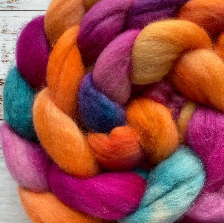 A fine soft, fluffy, super white Chilean Wool, that dyes just beautifully.