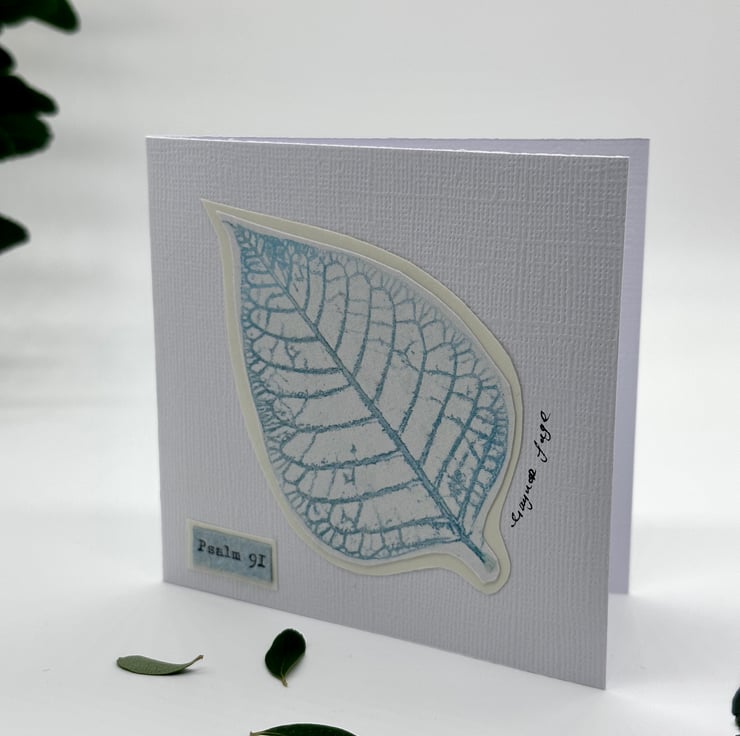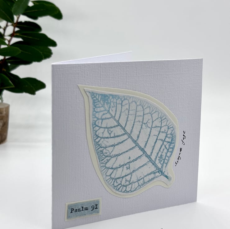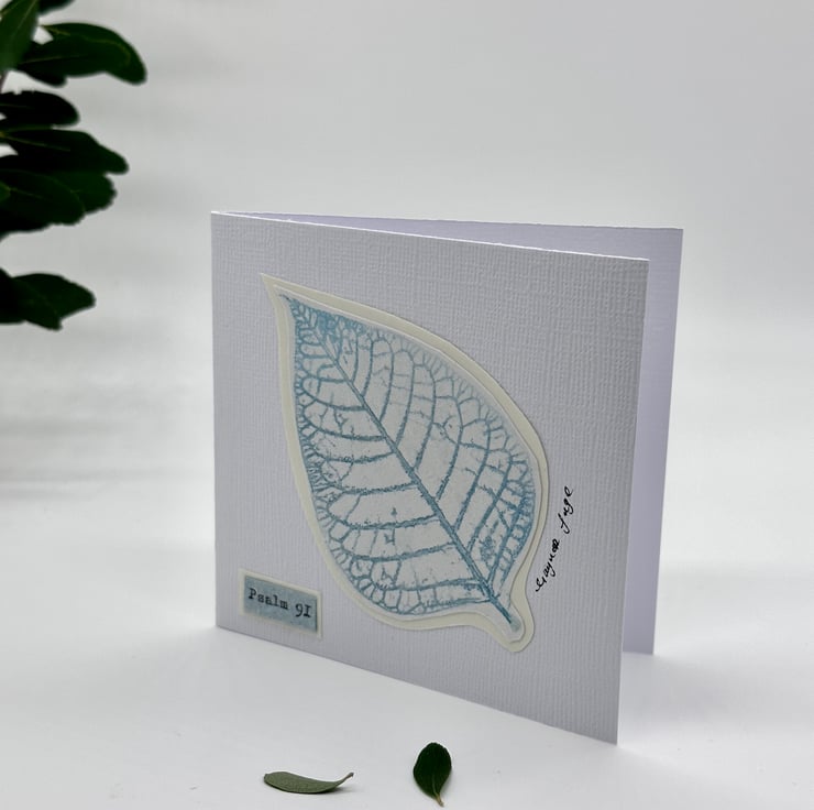 The inside of the card has been left blank and is suitable for any occasion. Psalm 91 is full of reminders of the goodness and power of God and has been typed on handmade paper using