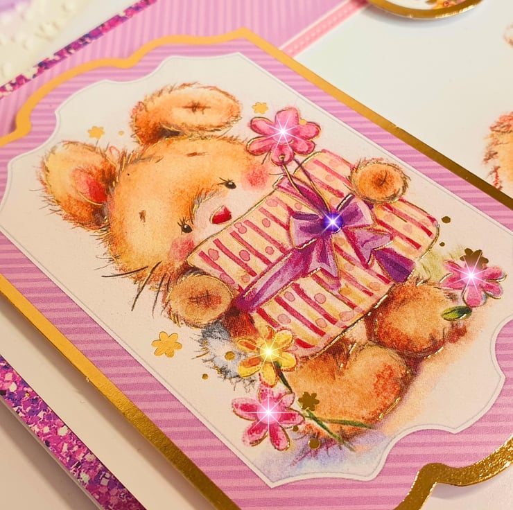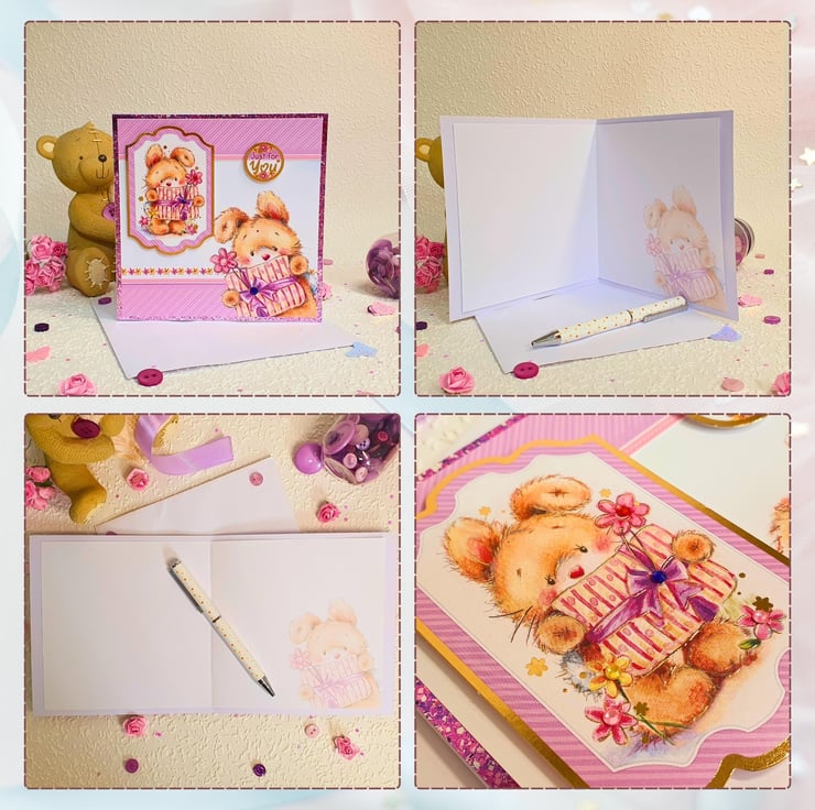 It is handcrafted by myself, using the Hunkydory "Furry Friends - Deluxe Card Collection".