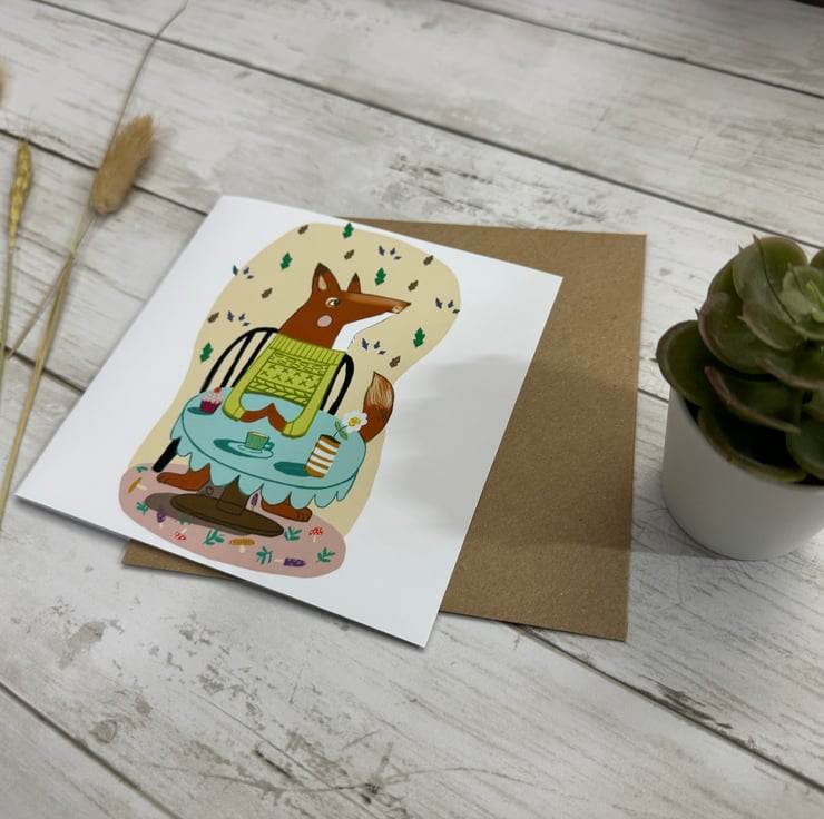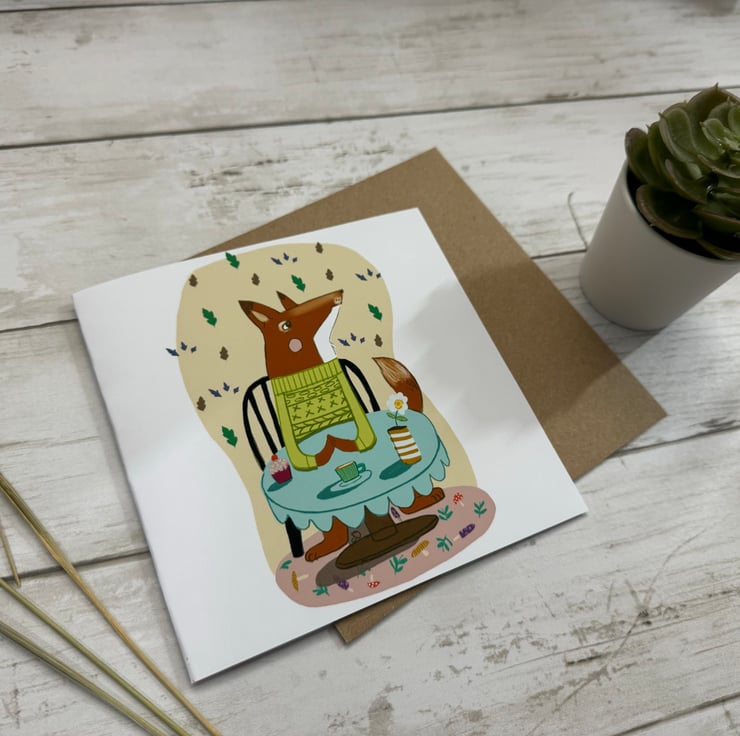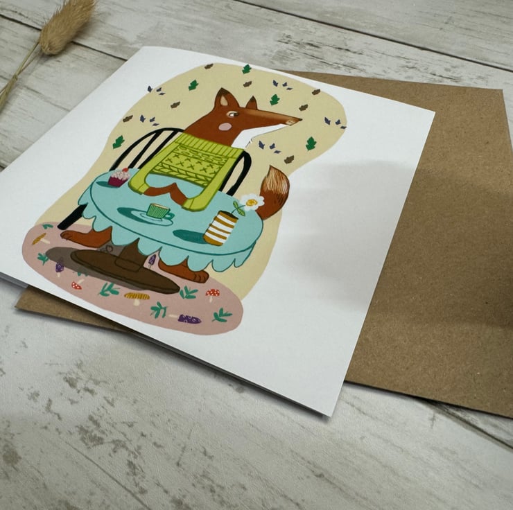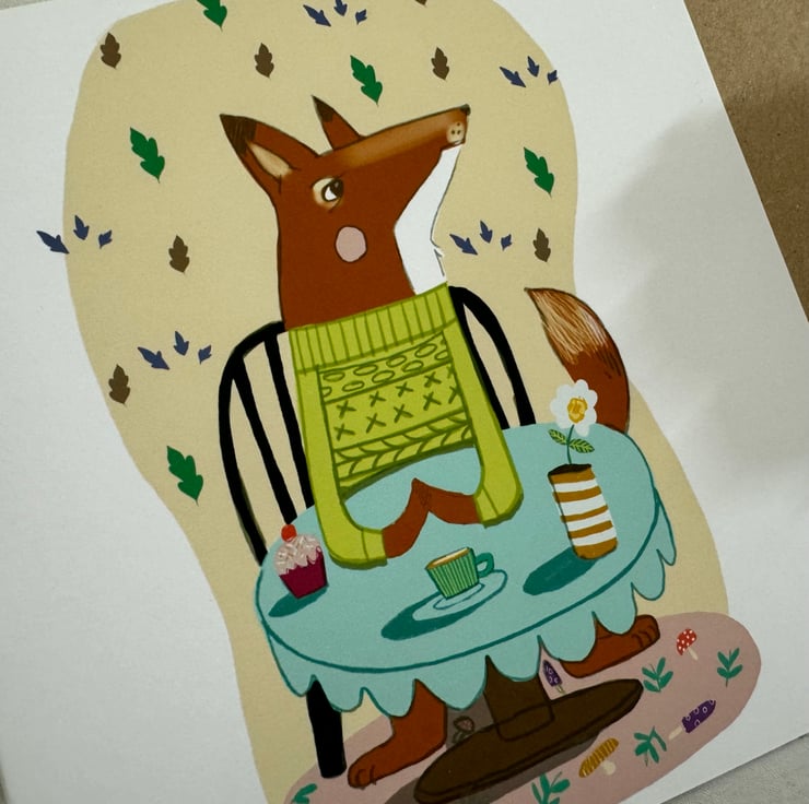 Story: illustration of Fox greetings card is created from an abstracted digital background using my app procreate on my iPad.
