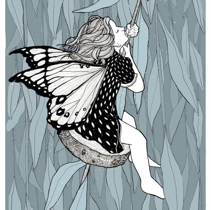 This detailed Fairy illustration is an A4 art print of my original pen and ink drawing. Inspired by flower fairies and magical worlds, this fairy swinging through the branches of a Weeping Willow tree makes a cheerful piece of wall art for any room, but would look particularly great in a child’s bedroom. This high quality piece of illustration art is printed onto 240gsm paper, using a Giclee printer to give the very best version of the art piece possible.