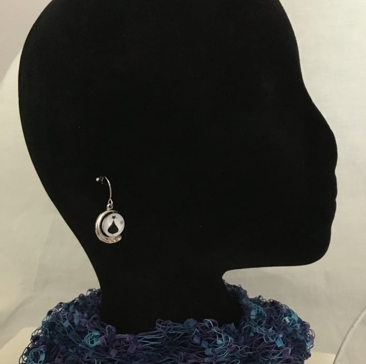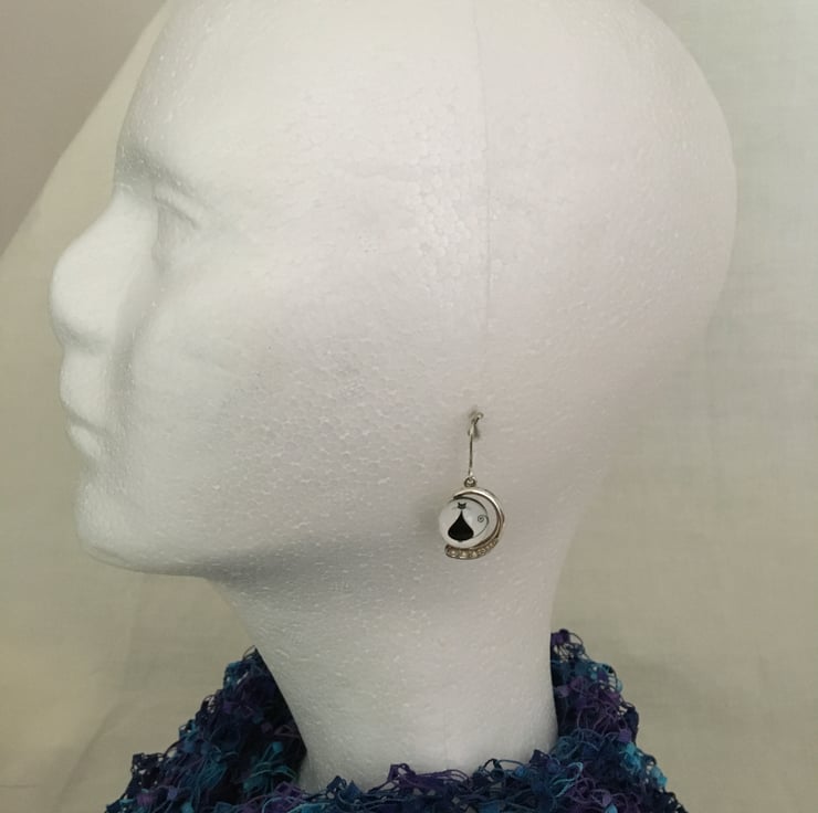 The earrings measure 0.8 in x 0.6 in with a drop of 1.5 in from silver plate earwires.