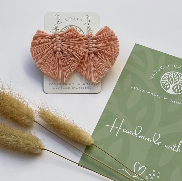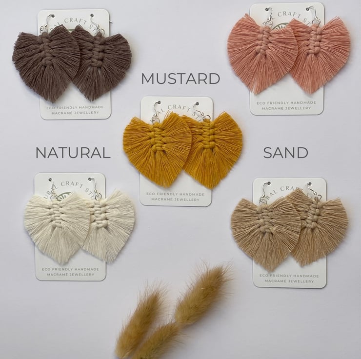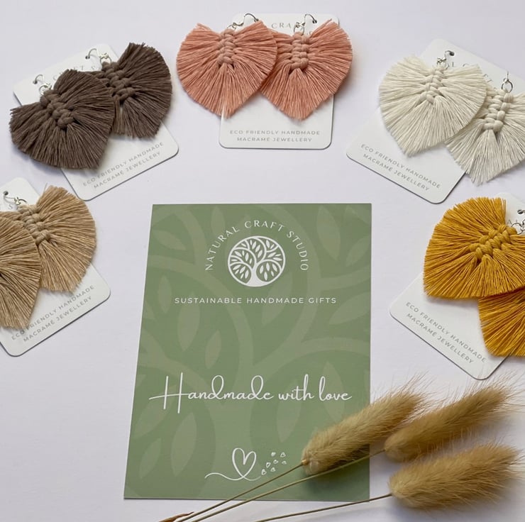All my macrame jewellery is made using sustainable recycled natural cotton and premium quality jewellery findings sourced locally in the UK. Each piece is carefully handmade to order in my studio in Ashbourne, Derbyshire.