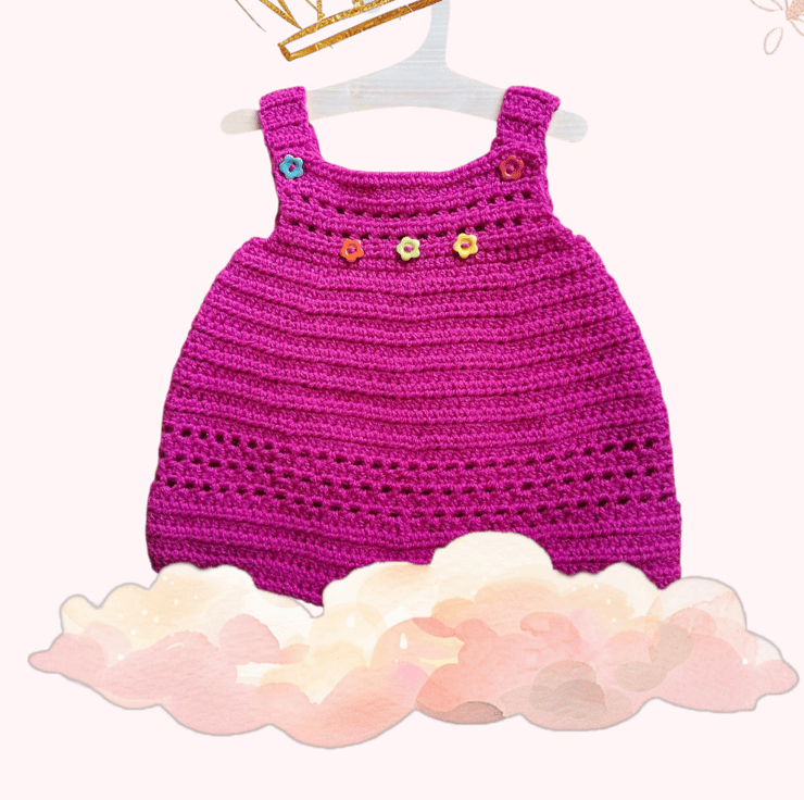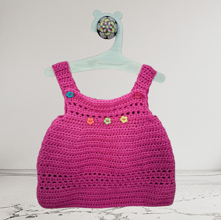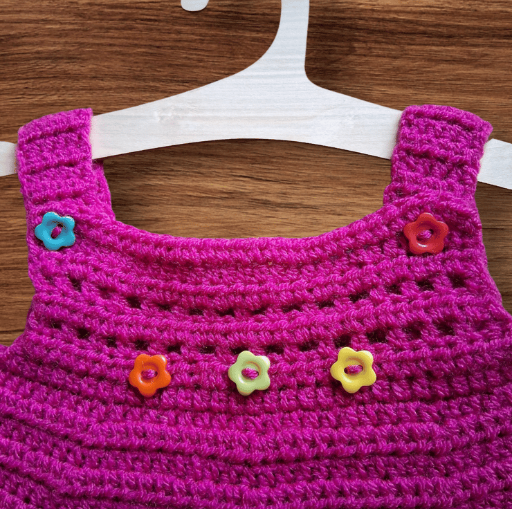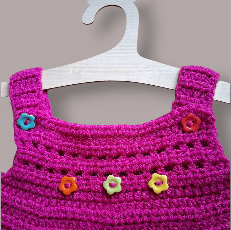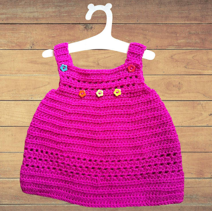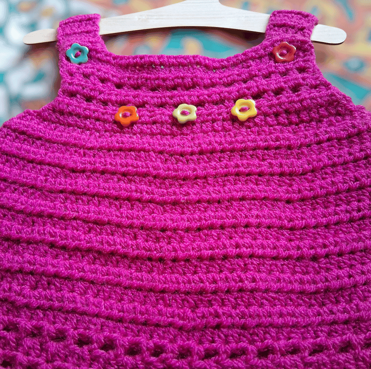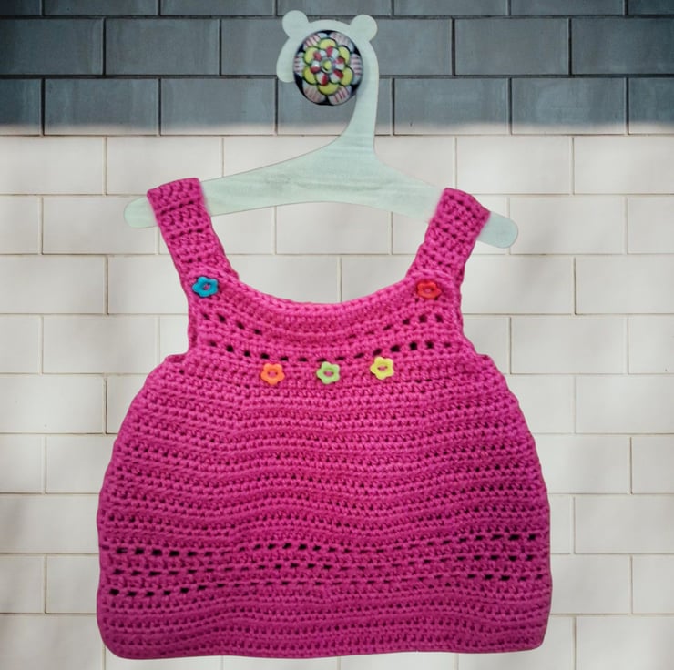 If you're tired of the pale and neutral try this bright pink pinafore with flower button detail.