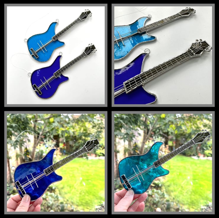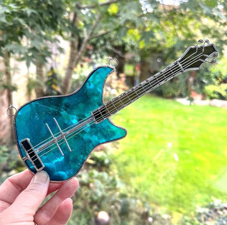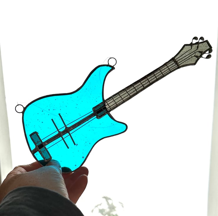 A few years ago I was asked if I could make a stained glass bass guitar. I’d not made one before so this was a new addition to my list of makes and has been very popular.