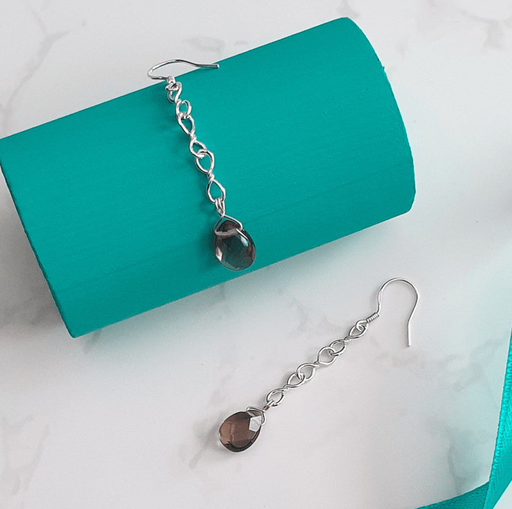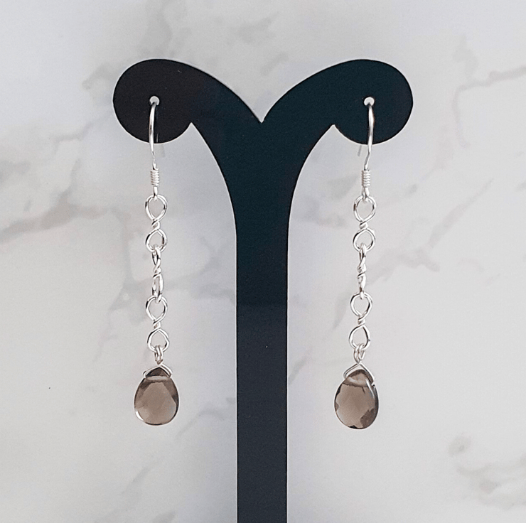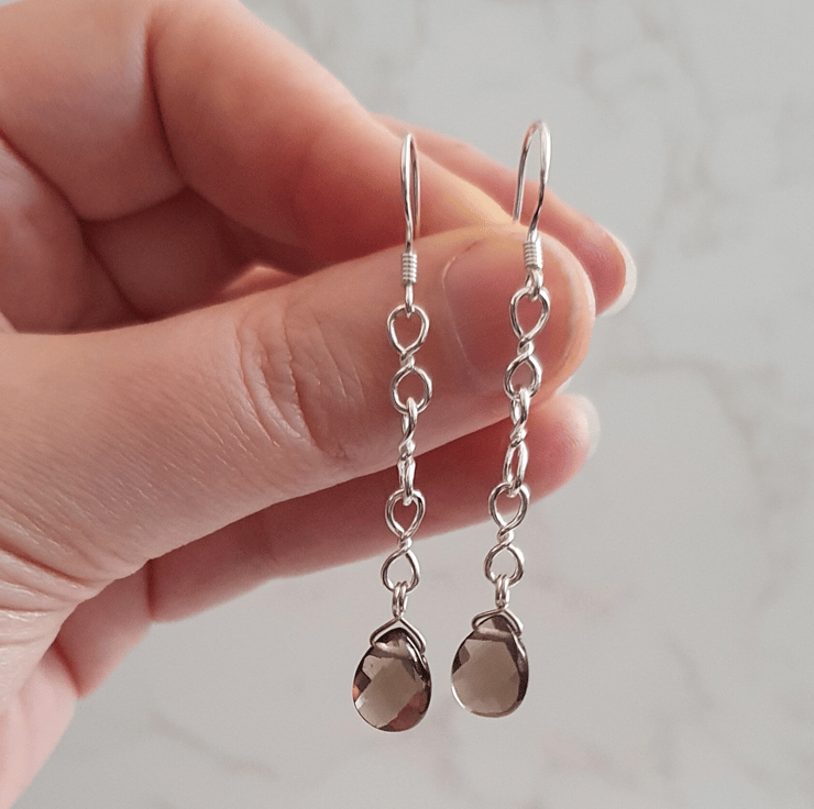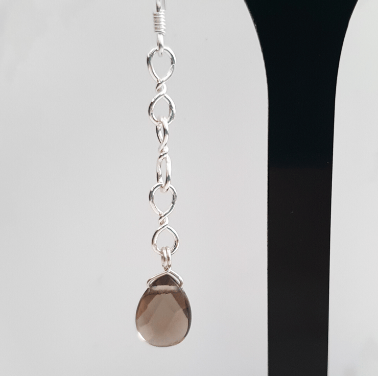Enhance your jewellery collection with these handmade sterling silver figure 8 chain earrings, gracefully accentuated by captivating Smokey Quartz drops. These long dangly earrings sway and move around as you do, allowing the faceted gemstones to catch the light for a truly stunning look.