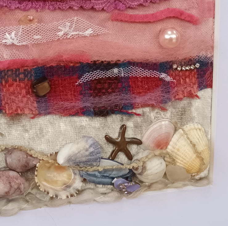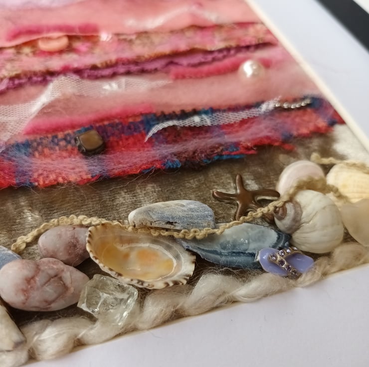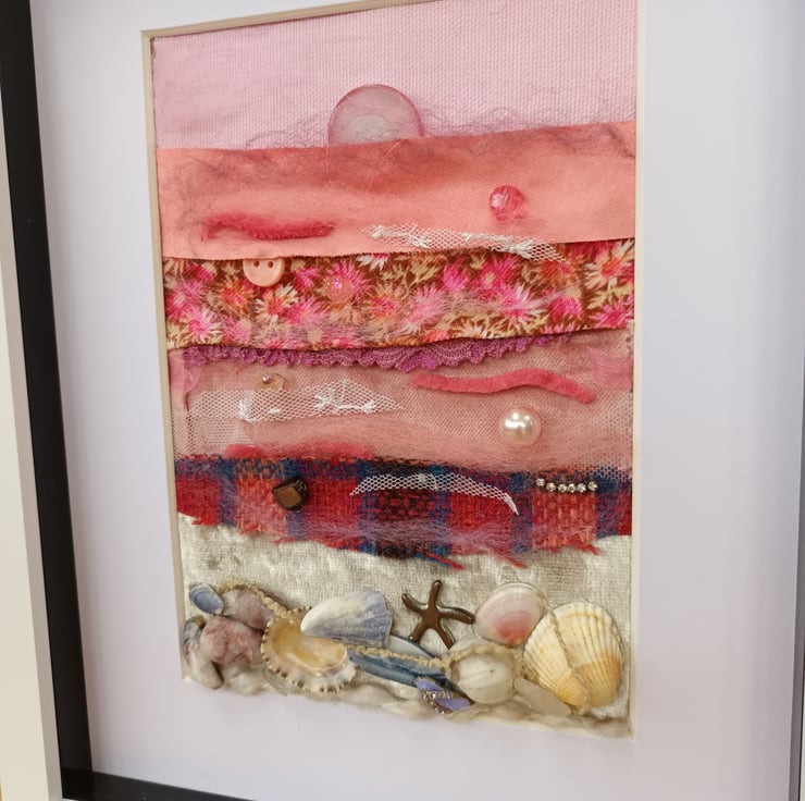 Inspired by this summer's stunning Cornish sunsets this piece in pinks brings a new look to my popular seascape collages.