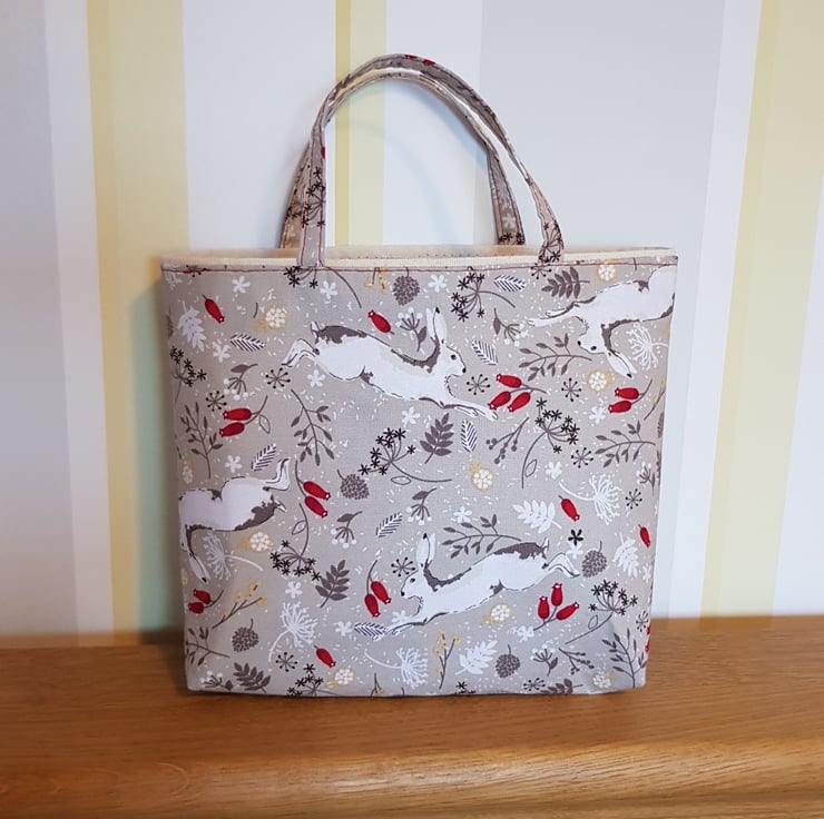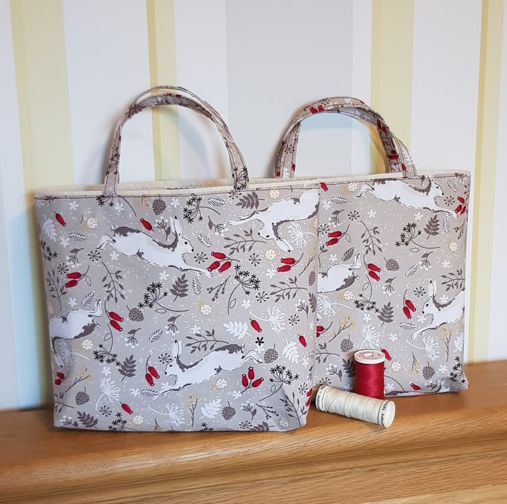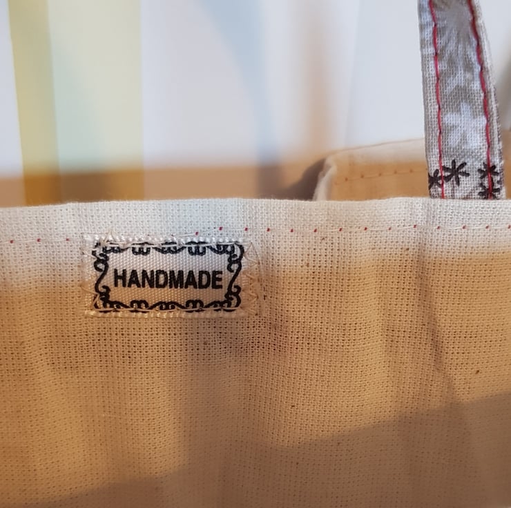 This little bag is ideal for popping in a small gift, or two. It measures approx 7" x 7": 18cm x 18cm and 2" , 5cm at the base. I have chosen s good quality cotton fabric , the bag is lined with a coordinating fabric and is interfaced with a recycled interfacing so it won't flop.