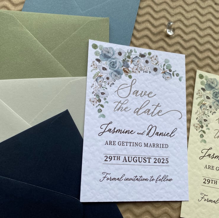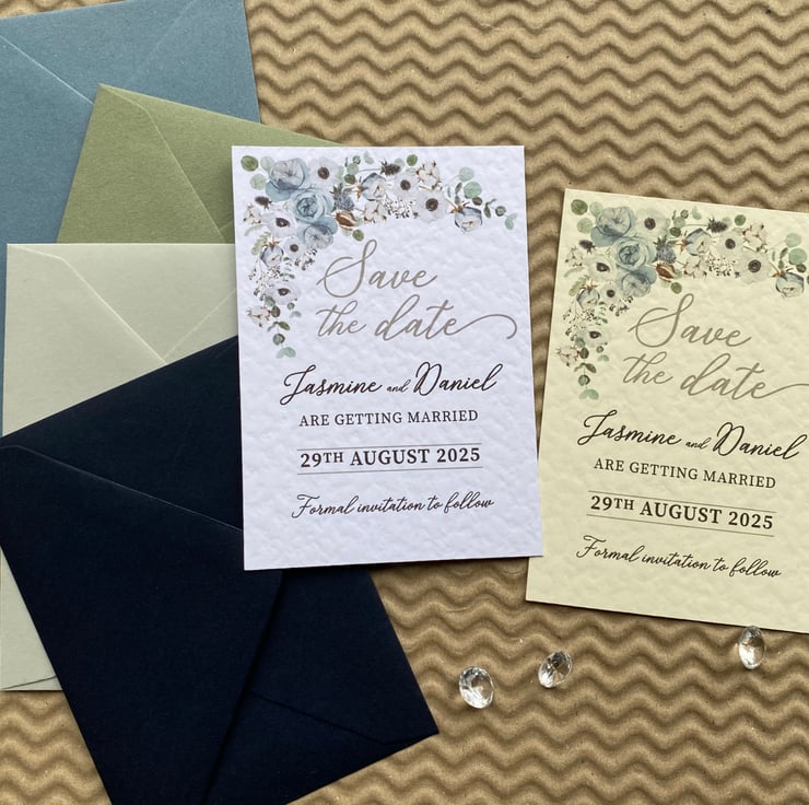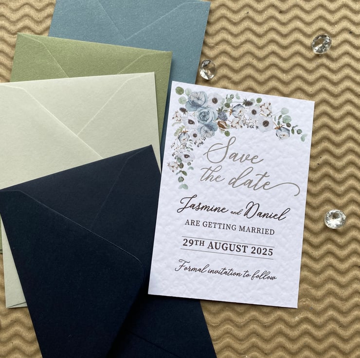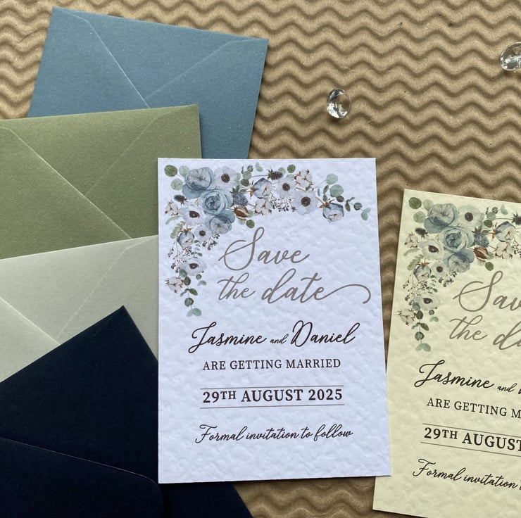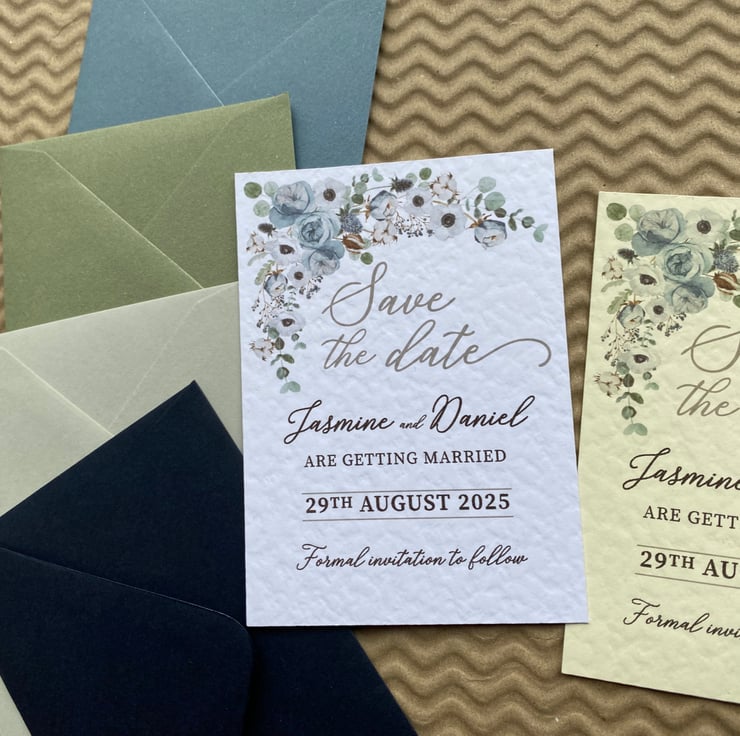 10 Dusty blue white flowers SAVE the DATE eucalyptus wedding invitations invites