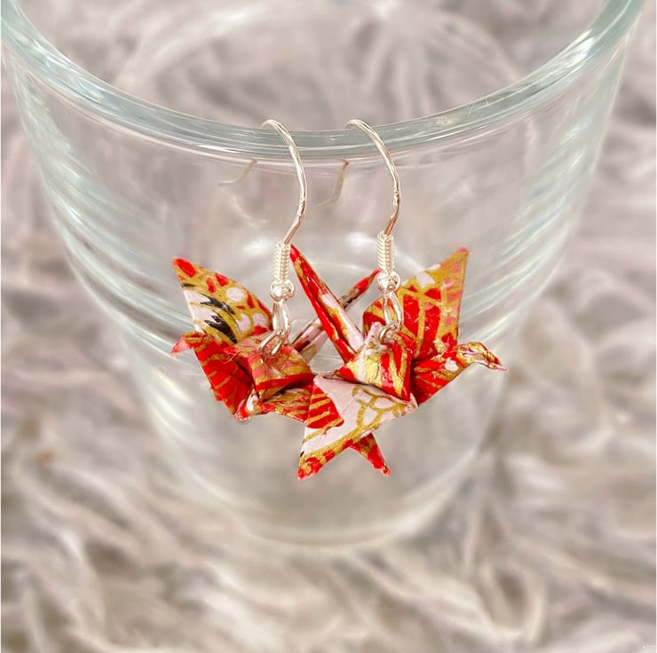 Handmade and carefully crafted origami Crane earrings, each piece is unique.