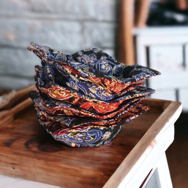 These paisley-inspired bowl cosies are designed to keep you bowls warm for longer and to protect your hands from the burning heat.