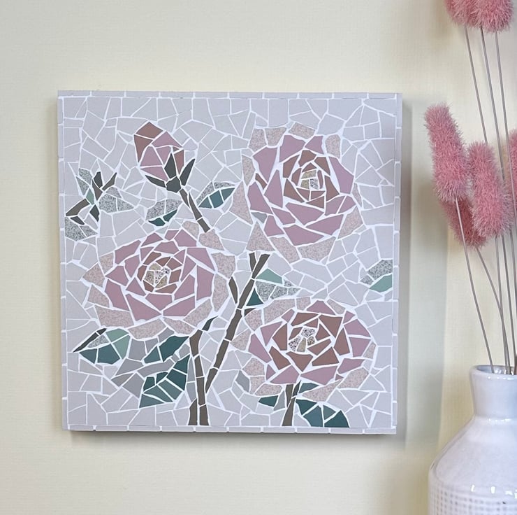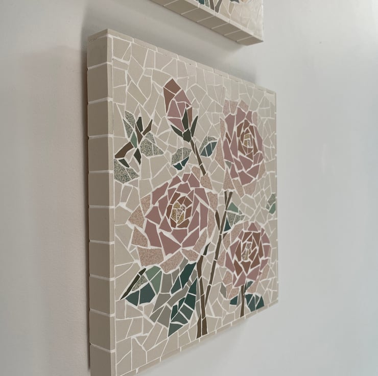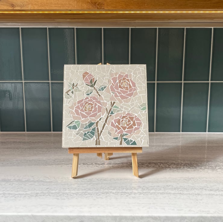 My first mosaic was of roses and they are still my favourite. The petals and spiral formations are challenging but really effective.