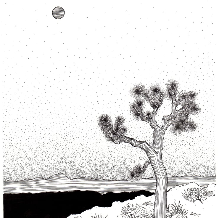 This black and white art print of my original pen and ink illustration makes a beautiful piece of wall art for any nature lover. It illustrates a view of a Joshua tree which is found in the American National Park of the same name- Joshua Tree. This minimalistic art print looks great in all interiors and the pen and ink detail captures the beautiful lines of the tree. It makes a great gift idea for a traveller, fan of the US National Parks and famous landmarks. This high quality piece of illustration art is printed onto 240gsm paper, using a Giclee printer to give the very best version of the art piece possible.