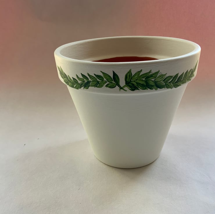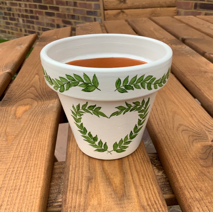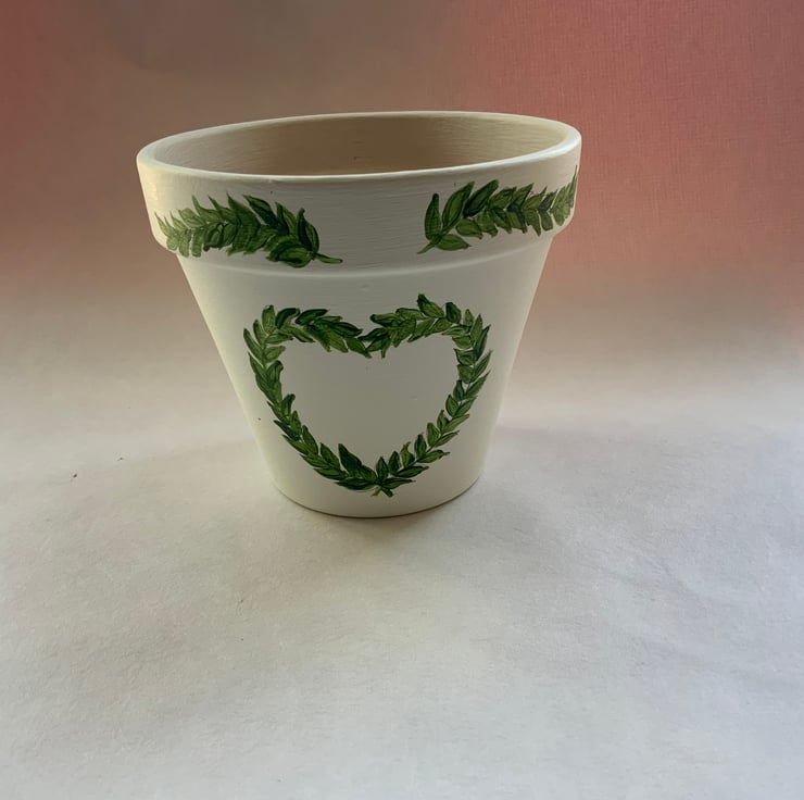Customisable Hand Painted Plant Pot - Ivory base with decorative foliage heart