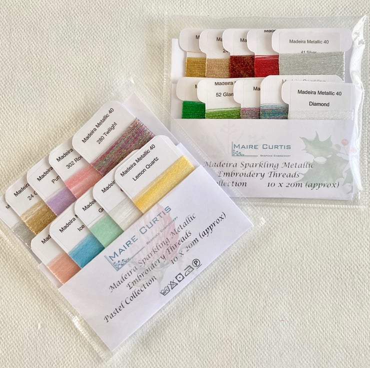 Good quality sparkling threads are hard to find and when we find them we want all the colours in our sewing box, so we have created some unique collections of high quality sparkling and metallic thread to offer the hand embroiderer some glitz and glamour to their stitching.