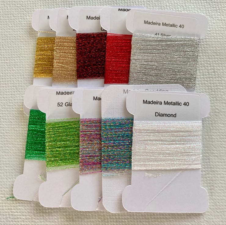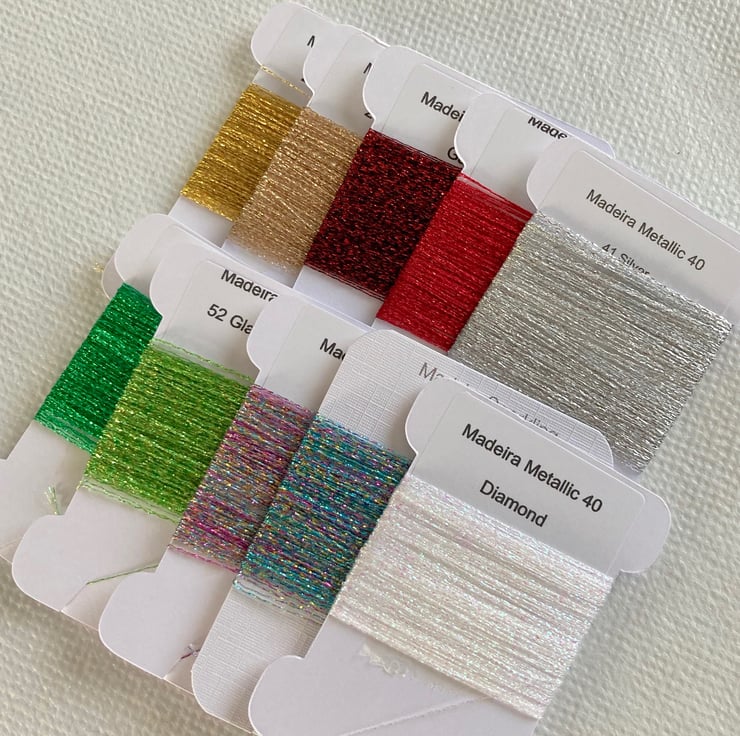 These festive shades all have a gentle multi tonal sparkle and are perfect on their own or used as blending threads tho add a sparkling and opalescent finish to embroideries and cross stitch.