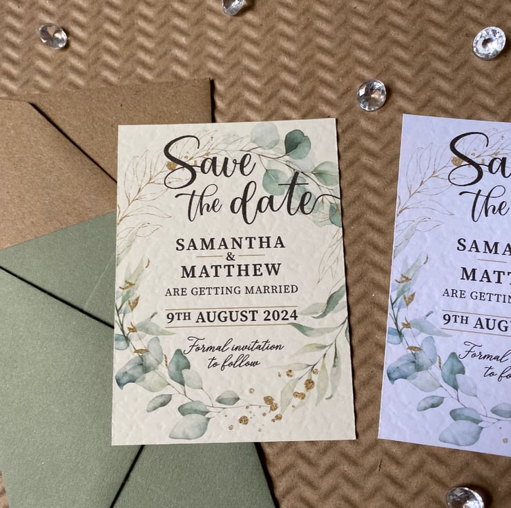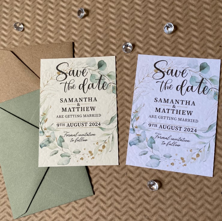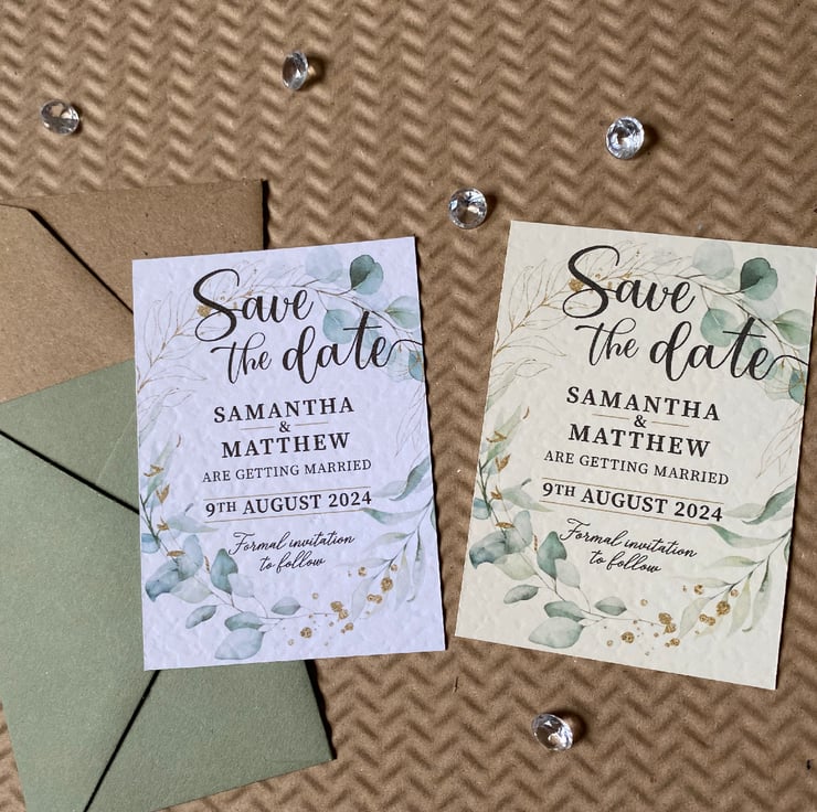 10 SAVE the DATE luxury eucalyptus leaf wreath wedding invitations invites
