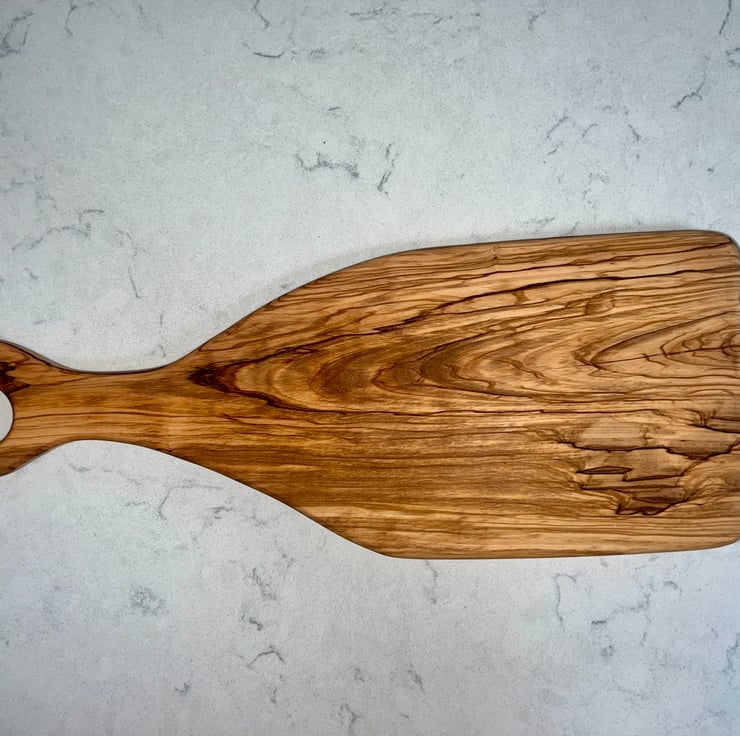 All of my kitchen boards are handmade from any of an array of sustainable woods, such as cherry, acacia, beech, teak, olive, maple, walnut, padauk and purple heart timber. They are then finished with Walrus Oil and Walrus Oil Wood Wax, which is 100% Food-safe and free from toxins and synthetics. I should add that no walruses were harmed in any way in the manufacture of this oil, it is a man made product, produced by a guy with a very large moustache.