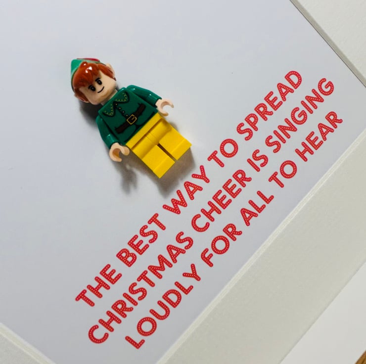 We would like you to meet Buddy the Elf from the classic Christmas movie, Elf. This little guy has been put together using original Lego parts. There are two options - the classic movie logo or the quote "The best way to spread Christmas cheer." - just choose the one you want.