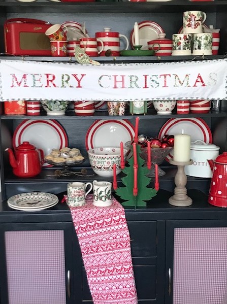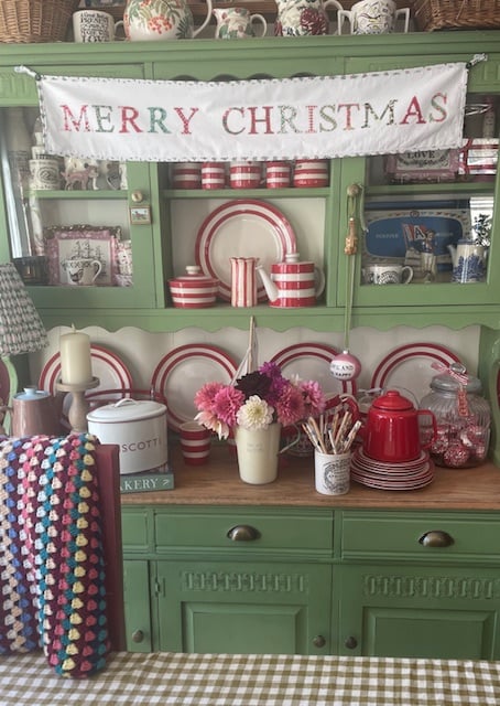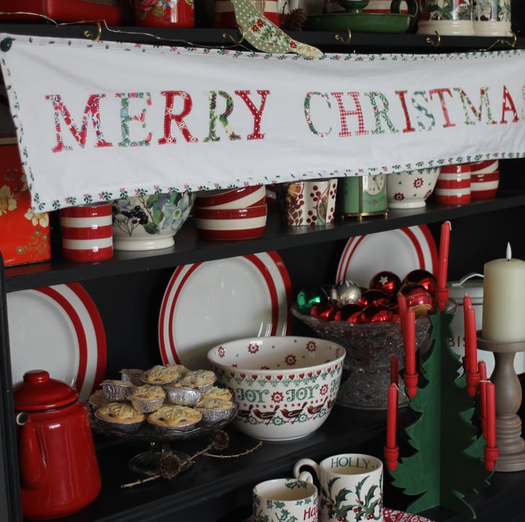 NB The banner on the dark blue dresser shown in the main photograph has been sold. The available banner is almost identical but some of the lettering varies slightly - you can see the exact fabrics I've used in the last two photos.
