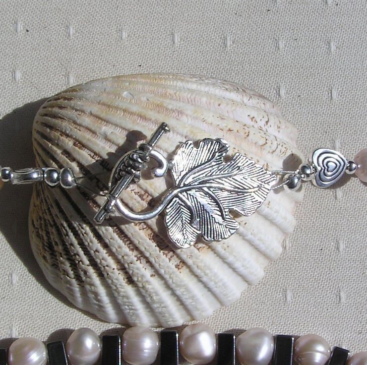 It fastens with a Silver Ivy Leaf shaped Toggle Clasp