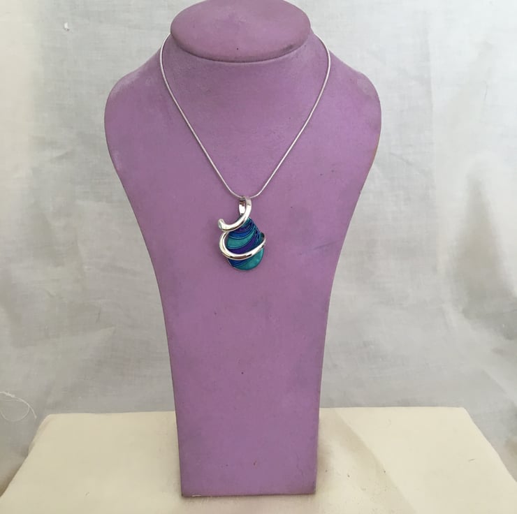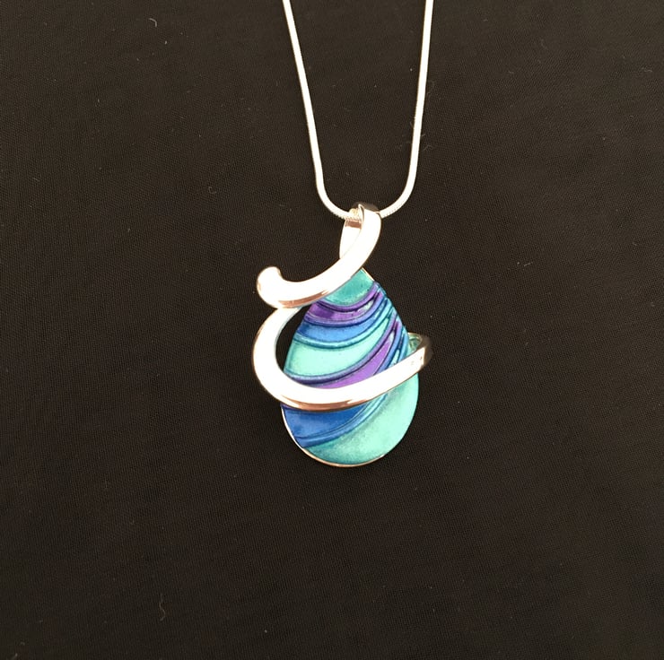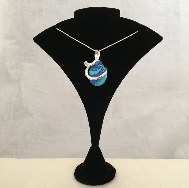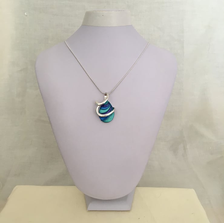Gorgeous wave pendant in vivid peacock colours in a quality silver tone setting