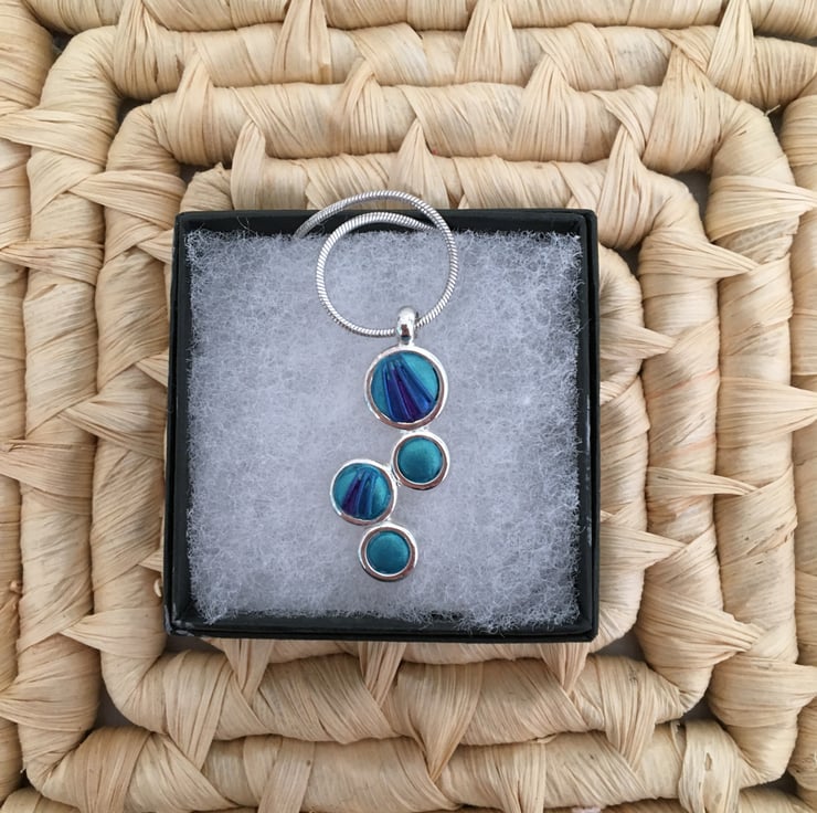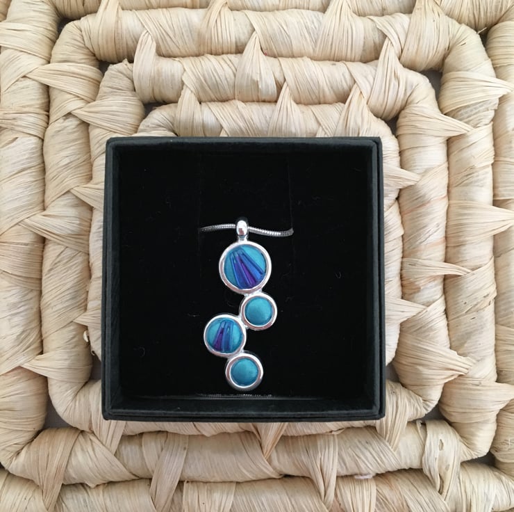 Looking for Christmas presents, this is a smaller 4 drop pendant in vivid peacock colours that might be just right.