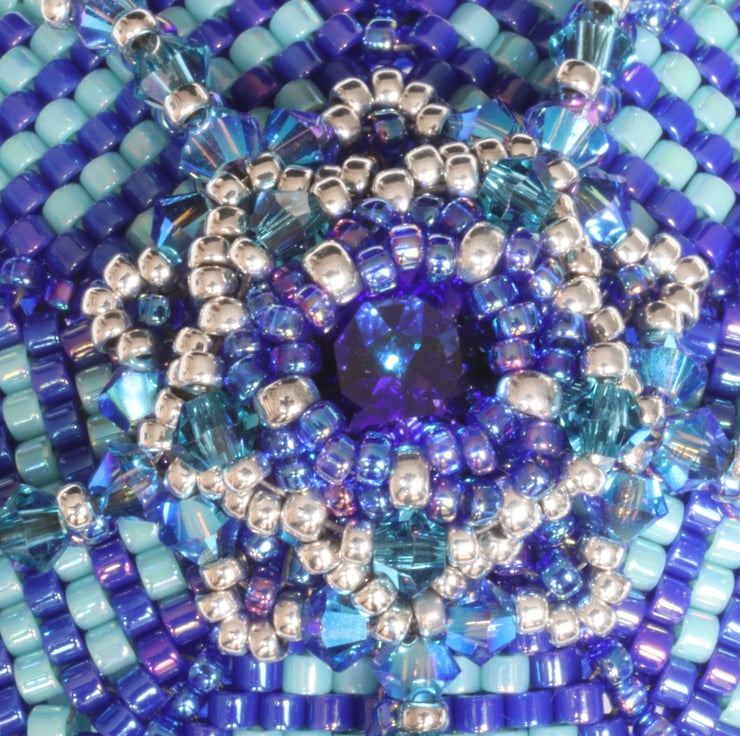 The pendant has been made using a tutorial from Ellad2, an inspirational Serbian jewellery designer who allows products made from her patterns to be sold by the makers. Her pattern is called ‘Whimsical Pendant.