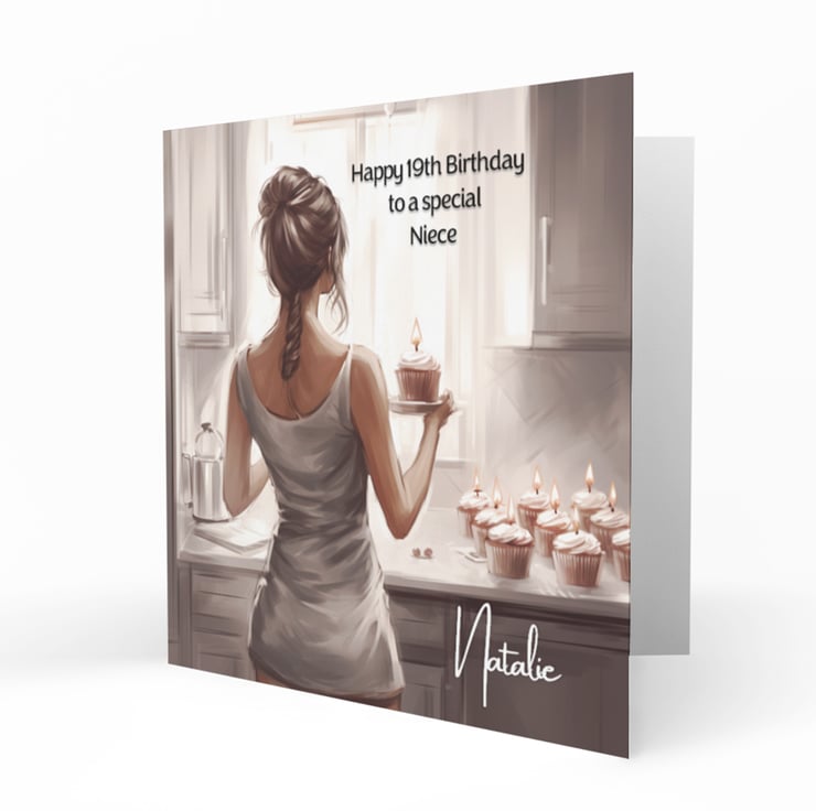 Front of the card can be personalized with her age, your relationship and her name,
