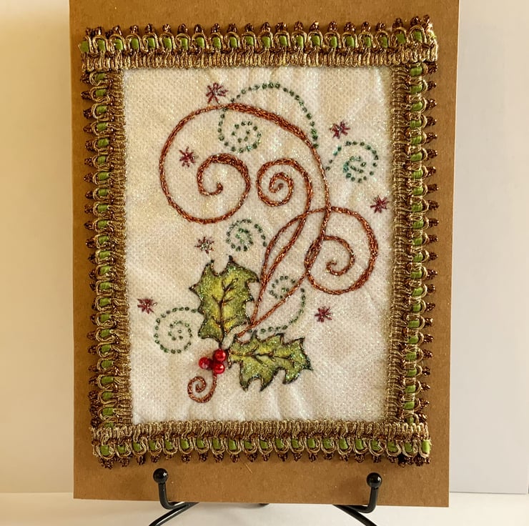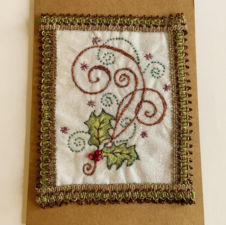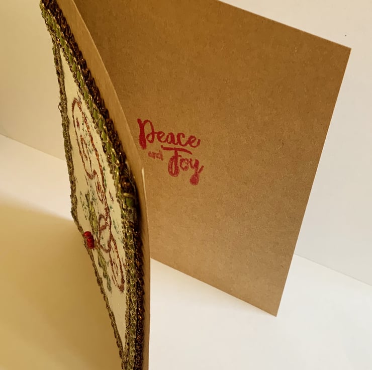 Hand painted and embroidered on felt and cotton with little bead berries.