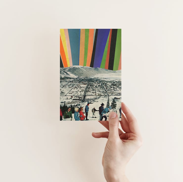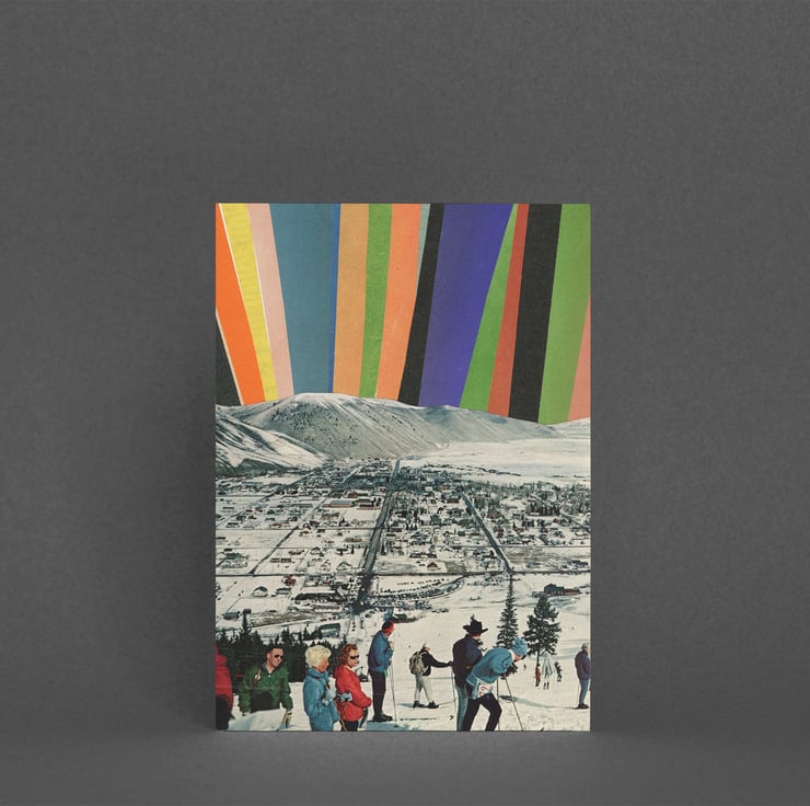 A vintage ski scene with a modern edge. This rainbow Christmas card will make a loved one smile.