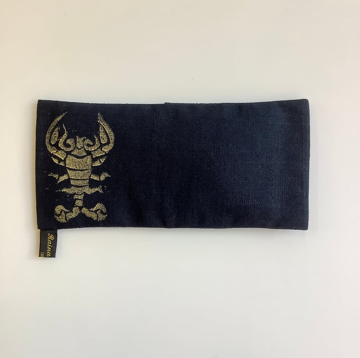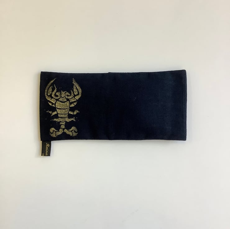 Eye pillow hand printed with an original linocut design using eco friendly inks on to natural 100% naturally-sourced eco-friendly linen