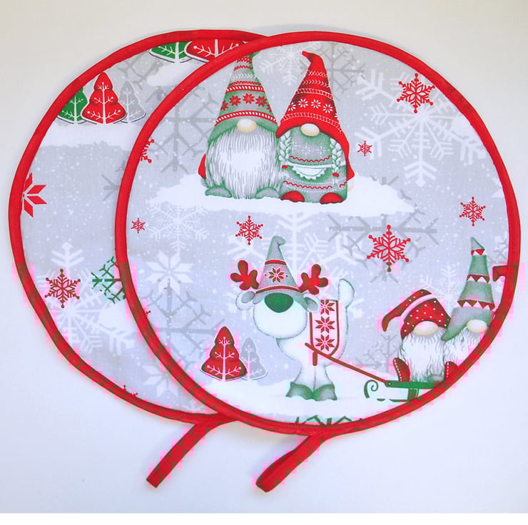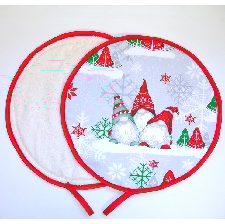 Each mat has three layers - Facing cotton fabric, a layer of padding and a layer of towelling - Making it also suitable for mopping up and pot-grabbing!