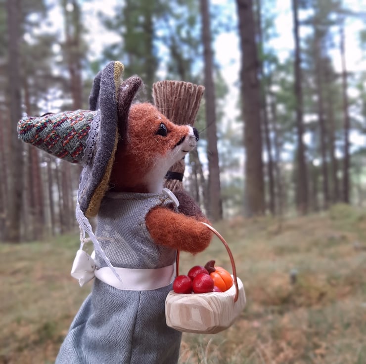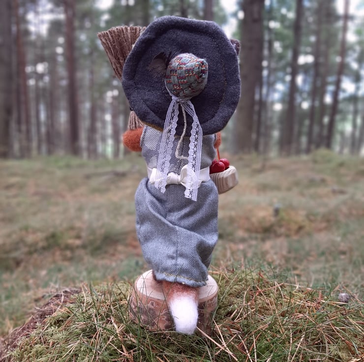 Miss Mabel Russett is a friendly garden witch, who loves to tend to the fruit trees and vegetables patches. She flies about on her tiny broomstick to collect the apples when it's time to bake apple pie!