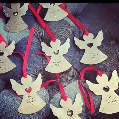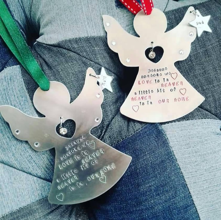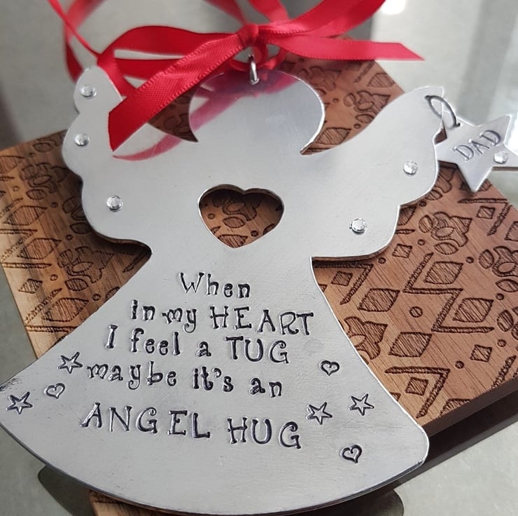 Hamdstanped tree ornament, stamped onto an aluminium blank. Metal stamping uses special tools and no machinery. Each letter is stamped individually. Words can be changed to suit your needs. Add a note with your choice of ribbon. Anything possible.