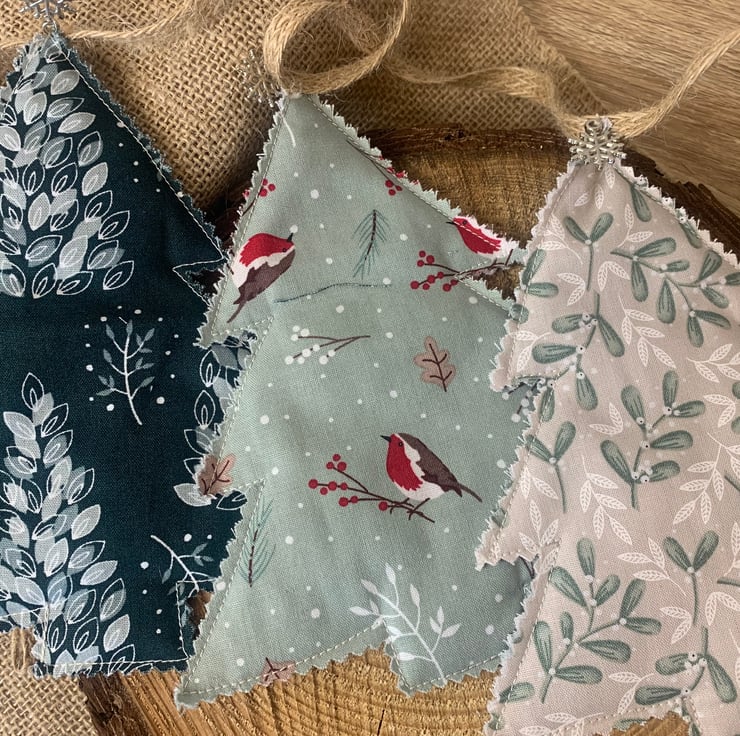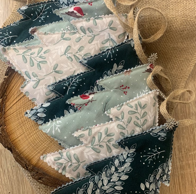 Consists of 7 100% cotton, lightly wadded, bunting flags (approx 18 x 14cm)