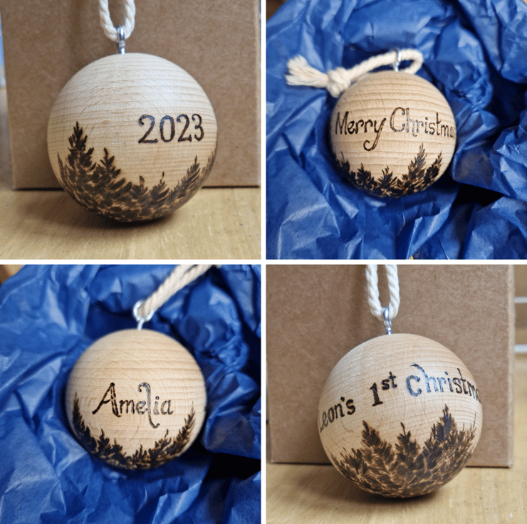 Solid wooden personalised baubles made to last a lifetime! These wooden baubles are engraved with the name and message of your choice. Please send me a message with the text you wish to appear on the bauble when you order.
