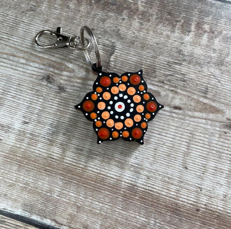 The finished Sacral Chakra Keyring measures approx. 5cm wide x 10cm long