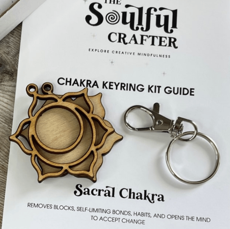 This unique Sacral Chakra Key Ring Kit gives you the opportunity to connect with the chakra symbol through sound therapy and dot art to relieve emotional blocks, self-limiting bonds and habits.