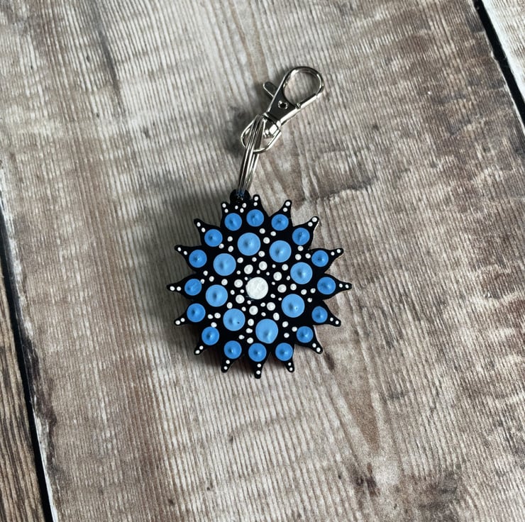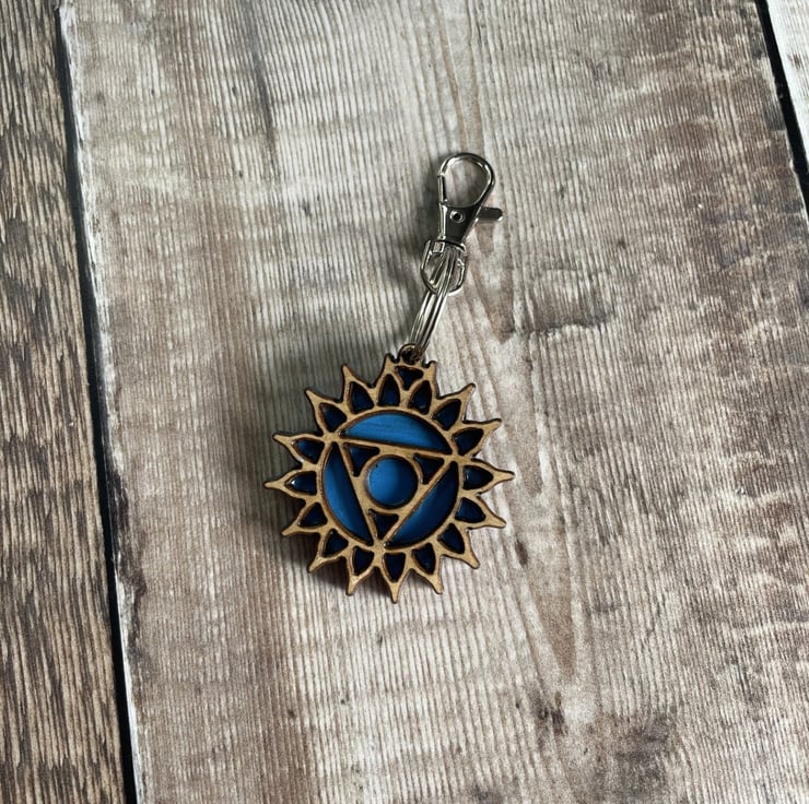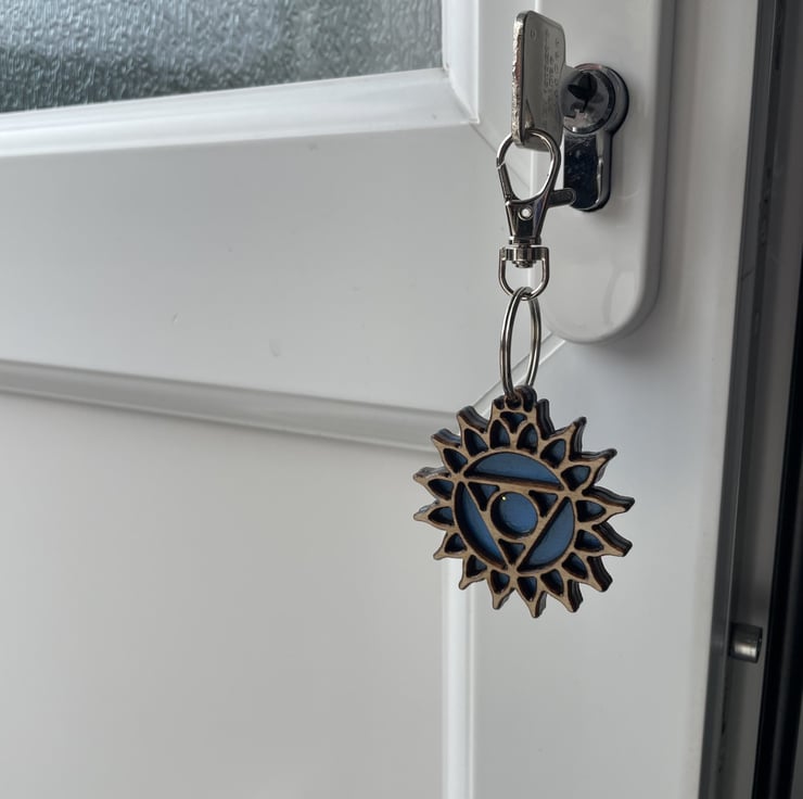 The finished Throat Chakra Keyring measures approx. 5cm wide x 10cm long