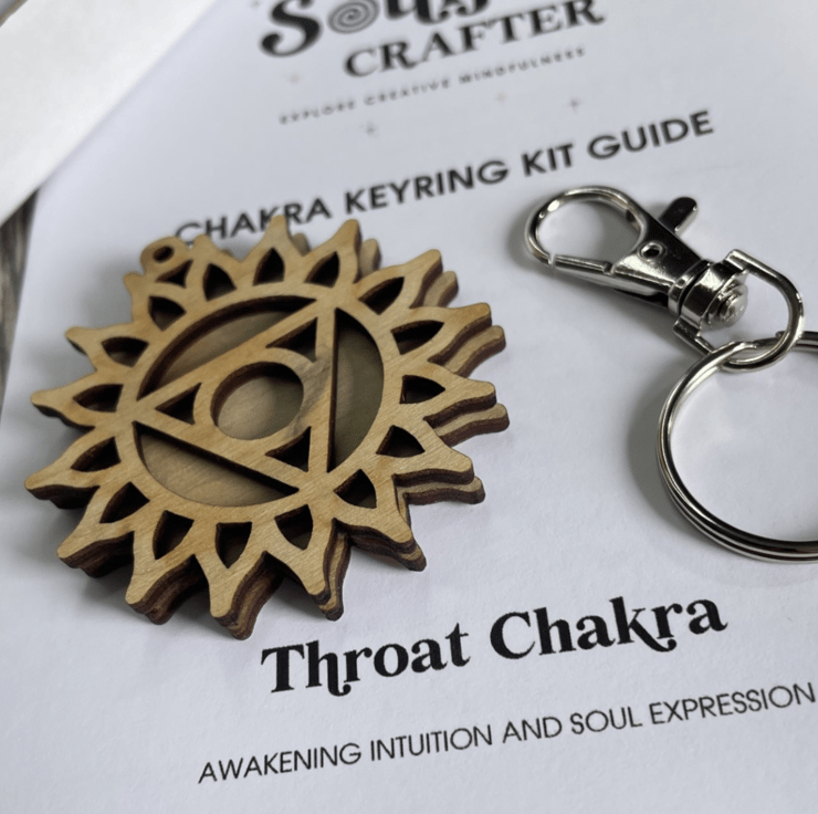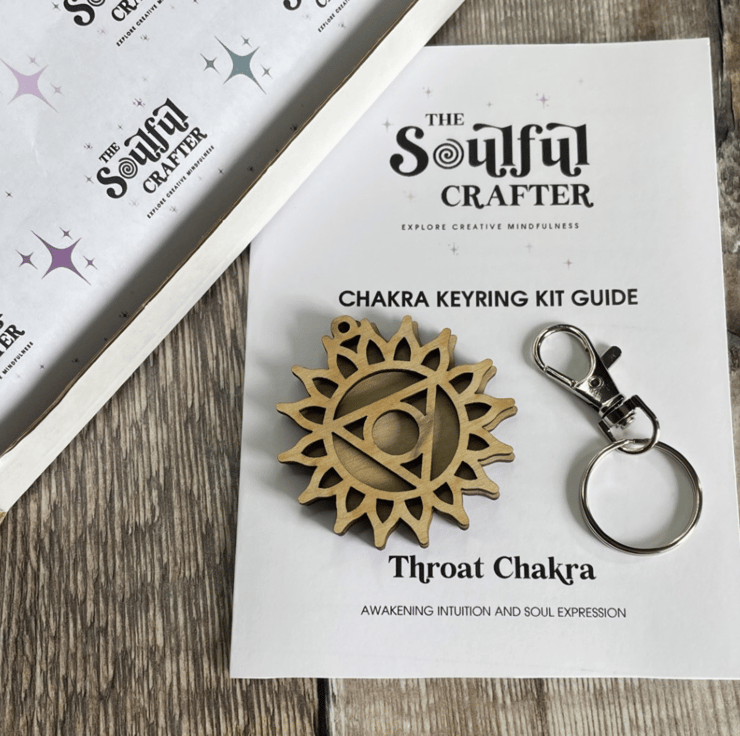 This unique Throat Chakra Key Ring Kit gives you the opportunity to connect with the chakra symbol through sound therapy and dot art to encourage soul expression.