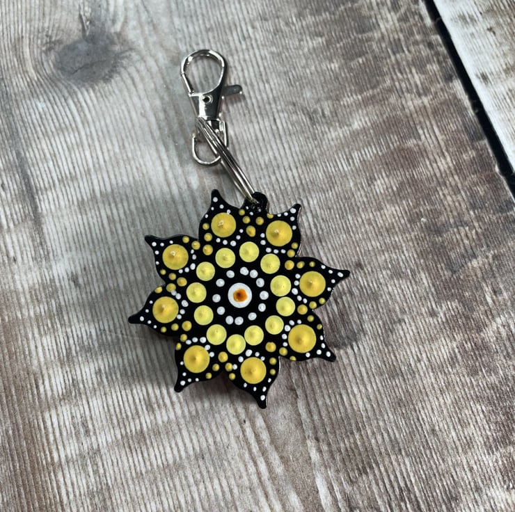 The finished Solar Plexus Chakra Keyring measures approx. 5cm wide x 10cm long