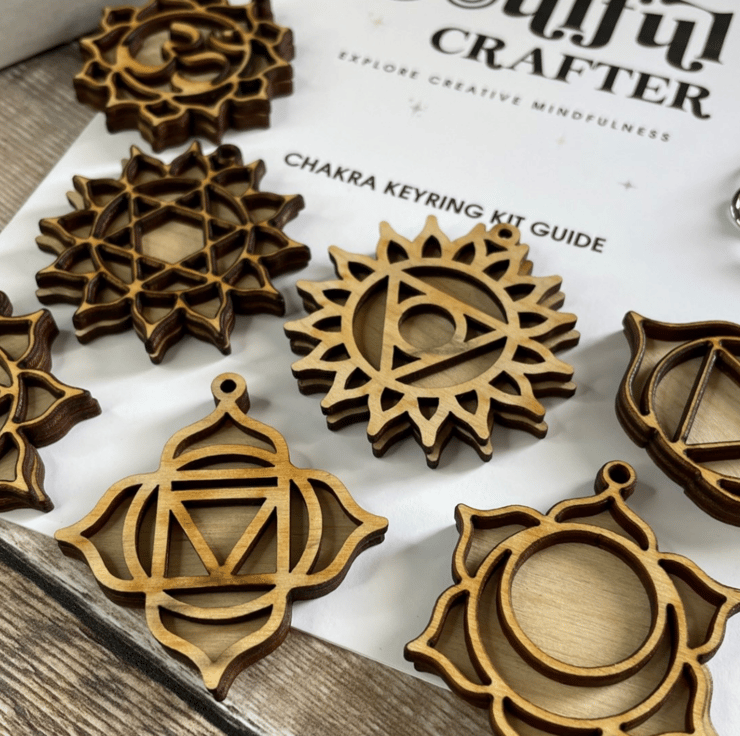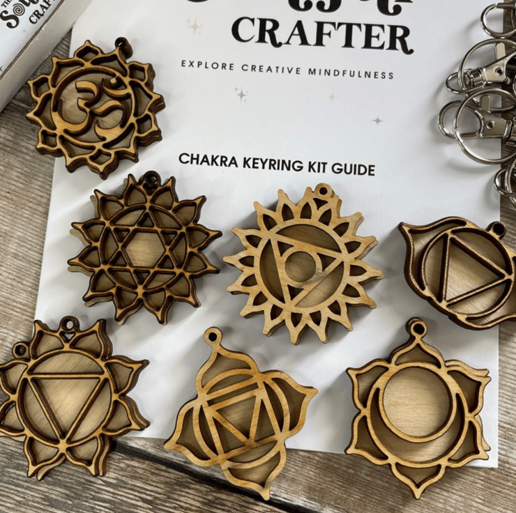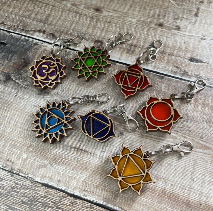 Our unique Chakra Keyring Kit gives you the opportunity to connect with the chakra symbols, sound therapy and dot art.
