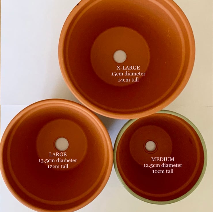 L - 13.5cm diameter, 7.5cm diameter base, 12cm height (perfect for supermarket growing herbs!)