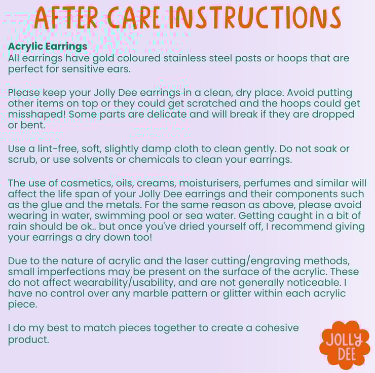 All Jolly Dee handmade and unique earrings are lovingly hand drawn, designed, assembled, packaged up and posted to you by me in Yorkshire. A plant mum in the making, I’m mainly inspired by plants, flowers, and nature.