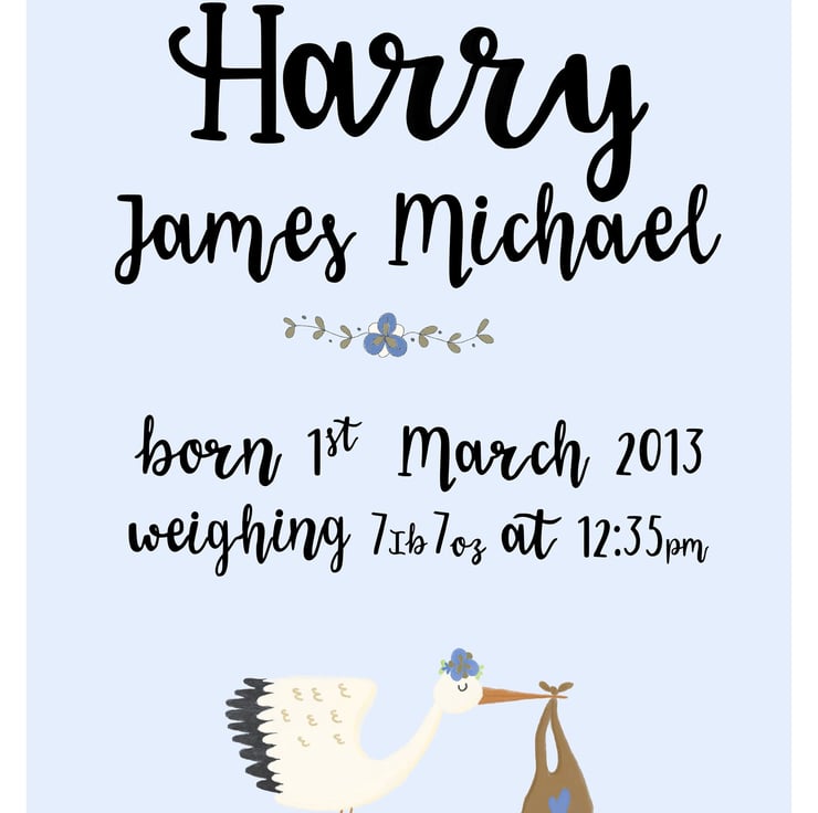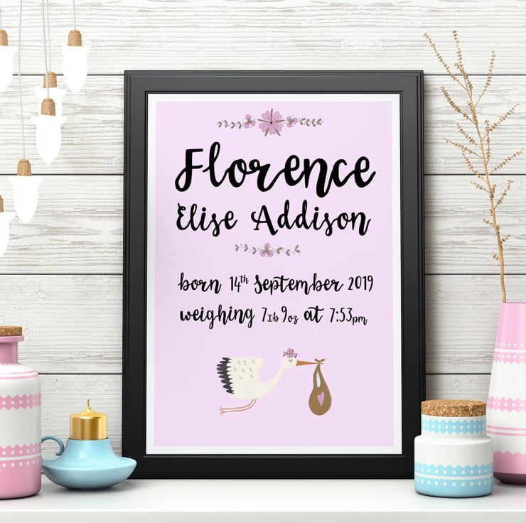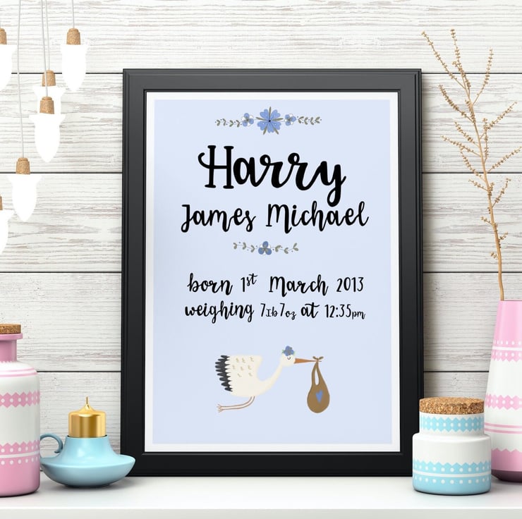 Looking for a unique and personalised way to commemorate the birth of a new baby? Why not welcome your new bundle of joy in style with our personalised birth print. This beautifully designed print is the perfect way to celebrate the arrival of your little one and make for a truly special keepsake.