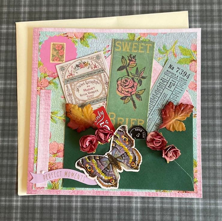 The card is finished with a butterfly and a banner which says Perfect Moments.