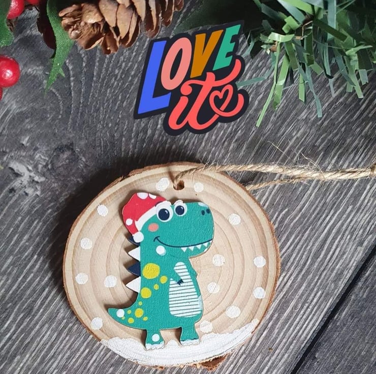 Cute wooden dinosaur Christmas tree decorations.
