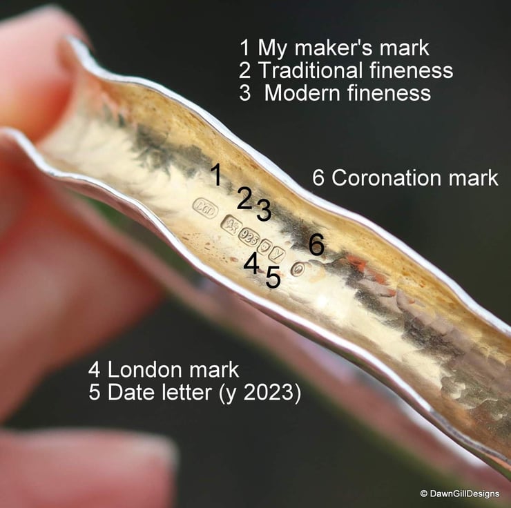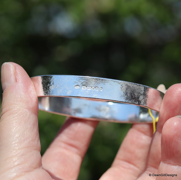 Because I used sturdy silver, the bangles are a decent weight meaning that both required formal hallmarking at the London Assay Office (ie more than 7.78g) and these both have the full UK hallmark for 2023, including the coronation mark, on the outer edge