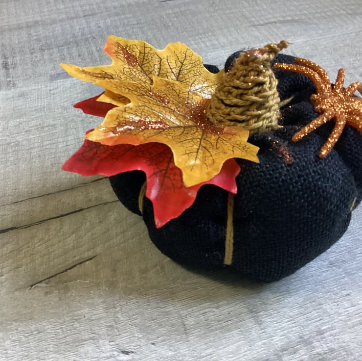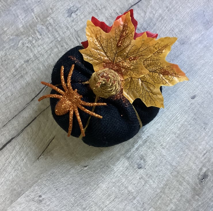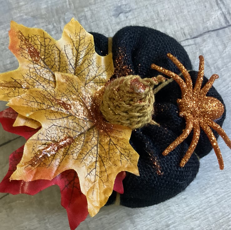 Great edition to Pumpkin Season. To make it I’ve used black hessian fabric, decorate with glitter spider ,decorative leaves, jute . Beautiful pumpkin in your home, what can be used for many years.